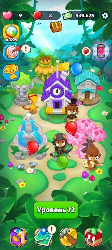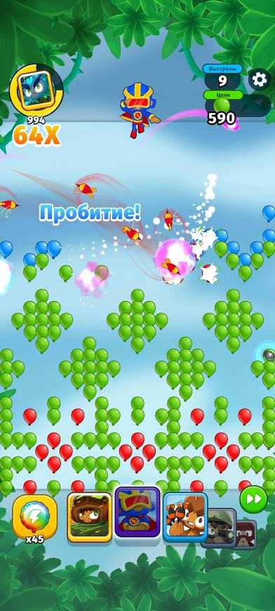 Bloons Pop! – это яркая мобильная головоломка, в которой вы отправитесь помогать милым обезьянкам восстанавливать их разрушенный город. Проходите многочисленные уровни, расстреливая цветные шары. Обезьян можно объединять для усиления, чтобы эффективнее выполнять задания и получать больше очков. За каждую победу вы сможете строить новые здания в городе, открывать новых персонажей, декоративные украшения и другие интересные вещи.