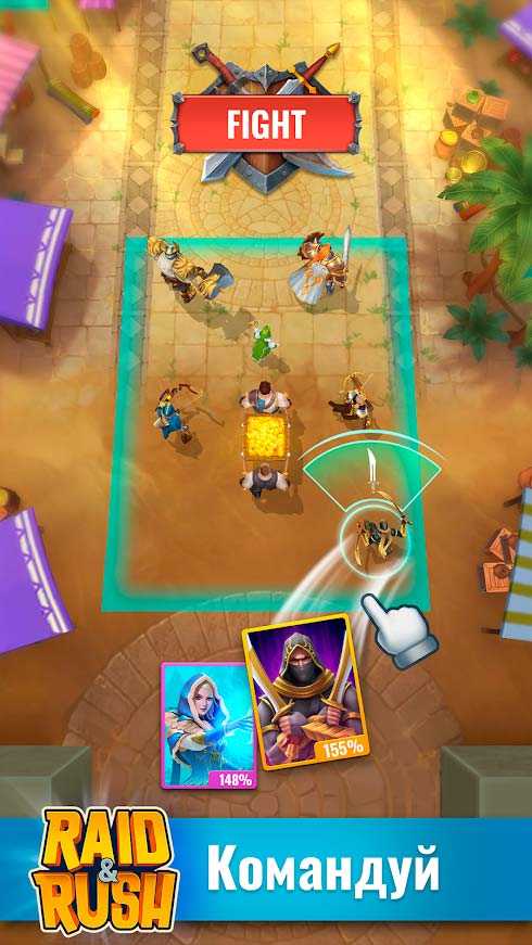 Raid and Rush – это новая ролевая игра, в которой вас ждут ожесточенные баталии, грозные драконы, темные подземелья с несметными сокровищами и многое-многое другое. Собирайте отряд бойцов и отправляйтесь исследовать просторные локации. Защищайте повозку с золотом, сопровождая ее до финиша уровня. Выполняйте задания, зарабатывайте звезды и открывайте новые игровые возможности. Разнообразие персонажей, сражения против компьютера или эпичные битвы с другими игроками, красочная графика и удобный интерфейс порадуют всех ценителей жанра и всегда поднимут настроение.