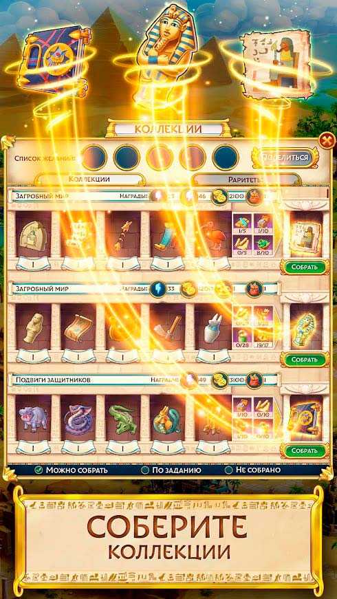 Jewels of Egypt: 3 в ряд – это удивительная мобильная головоломка с классической игровой механикой и ярким визуальным оформлением. Проходите сотни уровней и собирайте удивительные сокровища фараонов. Древний Египет готов принять всех искателей приключений. Мифы и легенды здесь оживают на экране. Открывайте новые задания и получайте уникальные награды, наслаждаясь чарующей атмосферой проекта.
