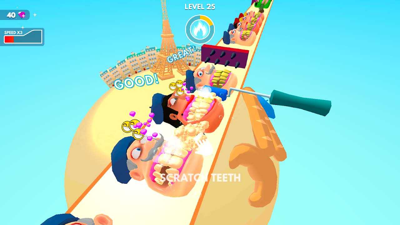 Teeth Runner! – это сумасшедшая мобильная аркада, в которой вы встретитесь с кучей нечищеных зубов. Вооружайтесь щеткой, зубной пастой и другими доступными инструментами, чтобы выполнить стоматологические процедуры по высшему разряду и получить максимальное количество очков. Множество морд с большими зубами, оскалами и малоприятной улыбкой станут отличным испытанием для каждого любителя незатейливых приложений.