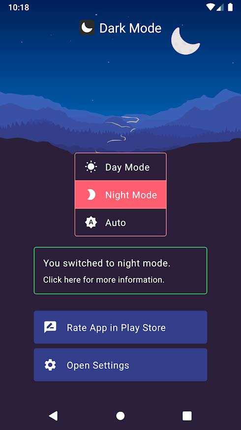 Тёмный Режим – это мобильное приложение, позволяющее установить темную тему для вашего андроида. Оно способно затемнить любую программу, поддерживающую данную опцию. Работает затемнение не для всех телефонов. Попробуйте выставить темную тему для своего гаджета и посмотреть как она выглядит – с такой программой вы можете сделать это просто, быстро и совершенно бесплатно.