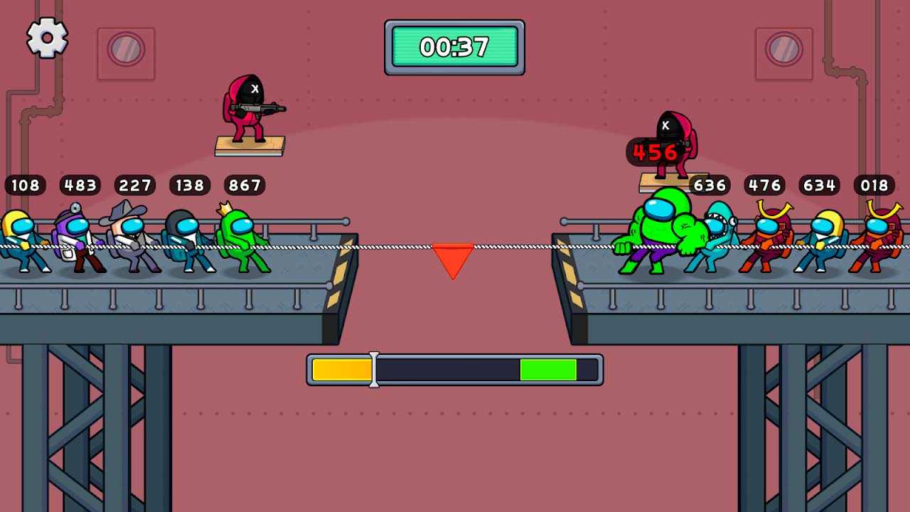 Survival 456 But It's Impostor – это увлекательная мобильная игра, сочетающая в себе любимую миллионами геймеров вселенную Самозванцев и недавно ставший популярным сериал «Игра в кальмара». Здесь вам доступны несколько мини-игр из сериала с простой механикой и ярким оформлением. Бегайте быстрее, следите за куклой, прыгайте по мосту, перетягивайте канат и финишируйте в числе первых, чтобы добраться до финального раунда и стать единственным победителем.