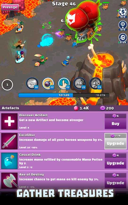 AFK Quest – это захватывающая ролевая игра в офлайн режиме, отправляющая вас в яркий фантастический мир. Тут собрано множество могучих героев, разнообразных артефактов, жутких монстров и море магии. Создавайте уникальную армию, выбирайте улучшения, развивайте навыки и побеждайте эпичных боссов ради славных наград. Лишь самые смелые и отважные воители смогут добиться успеха в этом удивительном виртуальном мире, так станьте же одним из них.