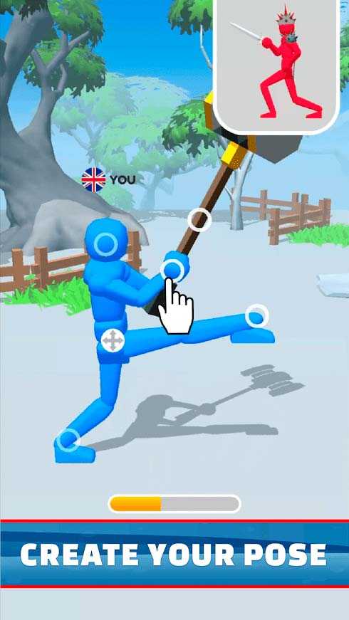 Fight Pose Duel Challenge – это необычная казуальная игра, в которой вас ждут забавные сражения шарнирных человечков. Выбирайте нужную позу до битвы, продумывайте стратегию и начинайте лупасить противника. Используйте доступное вооружение и броню, чтобы нанести больше урона и защититься от нападений. Больше тренируйтесь, экспериментируйте со стойками и уже скоро вы станете умелым рыцарем.