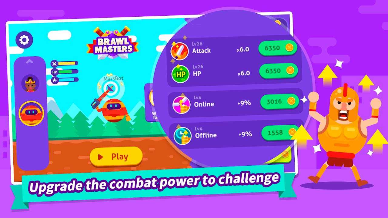 Brawl Masters – это забавная мобильная аркада с кучей ярких персонажей и захватывающих испытаний. Хватайте пушку помощнее и отправляйтесь покорять игровую арену. Простое и удобное управление, колоритные герои, затягивающий игровой процесс и другие особенности проекта делают его отличным способом скоротать время и сбросить напряжение. Уровней сложности тут хоть отбавляй, так что приготовьтесь оторваться от души.