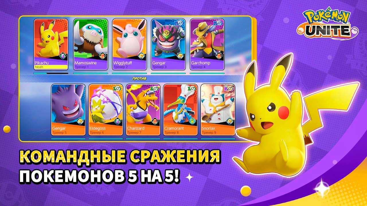 Pokémon UNITE – это увлекательные командные сражения покемонов у вас на ладони. Тут все зависит от слаженной командной работы, так что приготовьтесь к суровым испытаниям для ваших героев. Начинайте бой и старайтесь за отведенное время завоевать как можно больше очков, чтобы превзойти счет противников. Одевайте своих покемонов в стильные наряды, раскройте их истинную силу и наслаждайтесь эффектными сражениями.