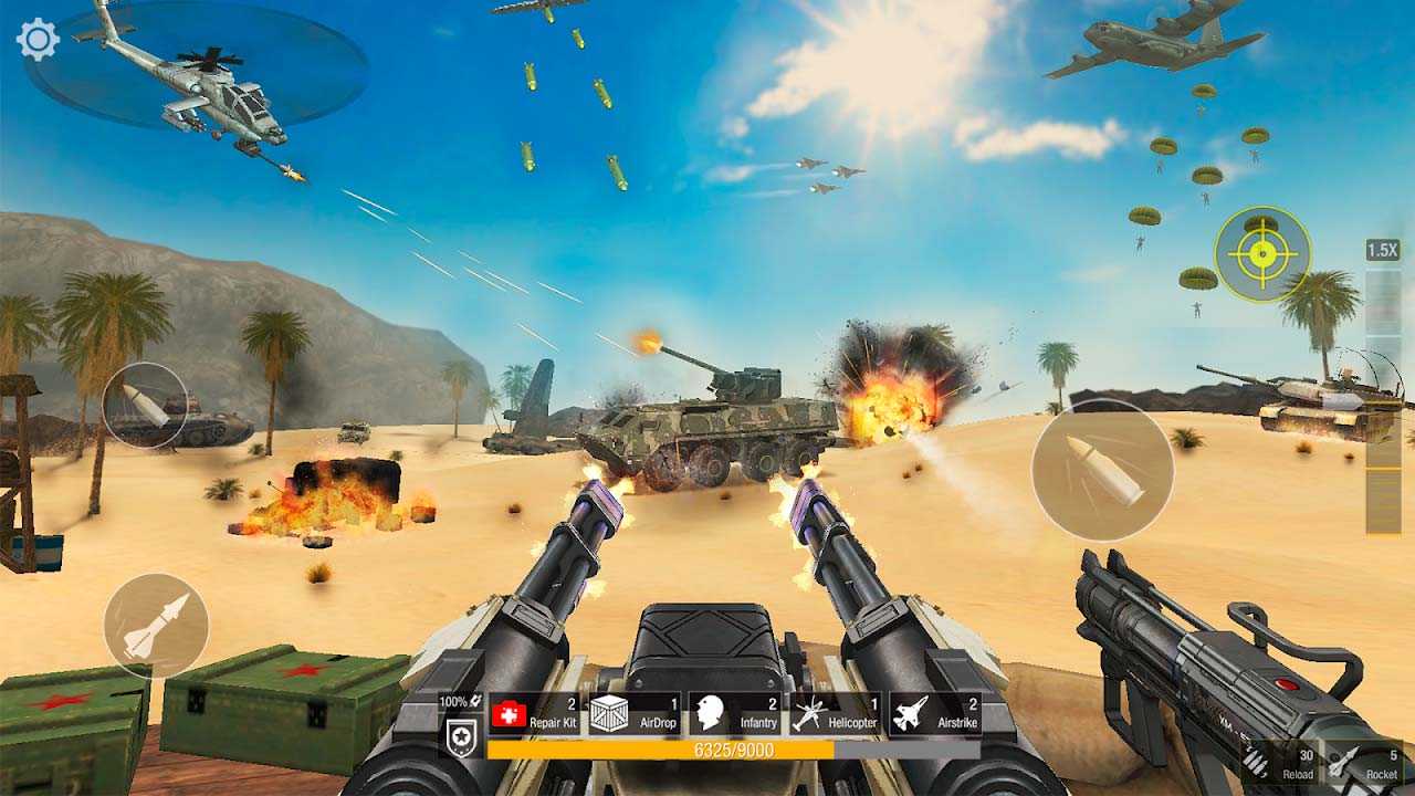 Beach War – это ожесточенные баталии с широким разнообразием оружия, отличной графикой и удобным управлением. Противник нападает со всех сторон, используя всевозможную технику и не экономя боезапас. В вашем распоряжении также будет немало интересных штук, начиная от обычных автоматных пуль и заканчивая огромными тепловыми ракетами, способными нанести любому врагу колоссальный урон за один выстрел.