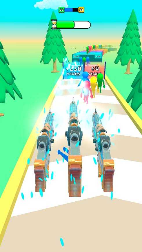Weapon Evolution – это необычный мобильный раннер, в котором вас ждет процесс эволюции человека практически с нуля. Начинайте с оружия каменного века и уверенно двигайтесь вперед, перескакивая через временные врата ради улучшения технологий и вооружения. Побеждайте врагов всеми доступными способами, переходите от эпохи к эпохе и зарабатывайте бонусы. Лишь самые умелые и везучие смогут дойти до современного времени и даже немного заглянуть в будущее.
