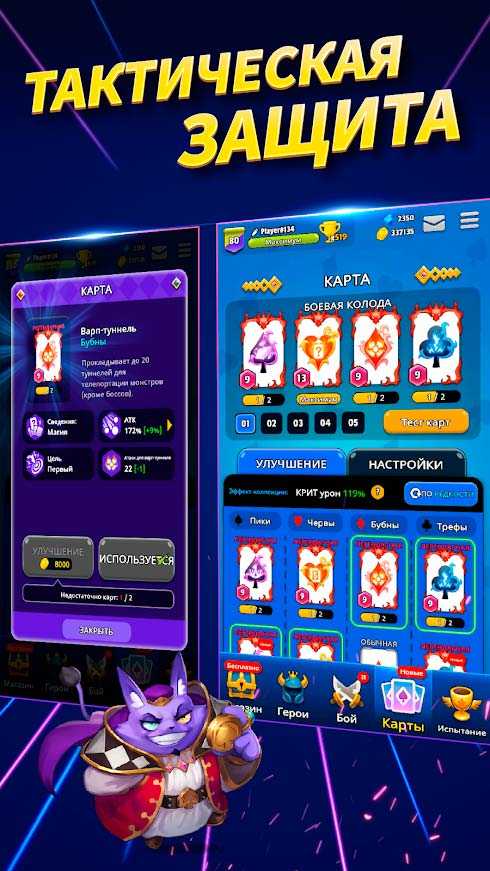 Poker Tower Defense – это карточная тактическая игра для мобильных платформ, в которой вас ждет множество крутых героев и захватывающих сражений. Собирайте мощную колоду, объединяйте нужные карты и создавайте достойную армию, чтобы справиться с любым противником. Окунитесь в реальную битву умов, где от ваших умений зависит исход каждого сражения. Создавайте свой боевой стиль, придерживайтесь выбранных тактик и экспериментируйте прямо на поле боя, чтобы стать настоящим мастером карточных баталий.