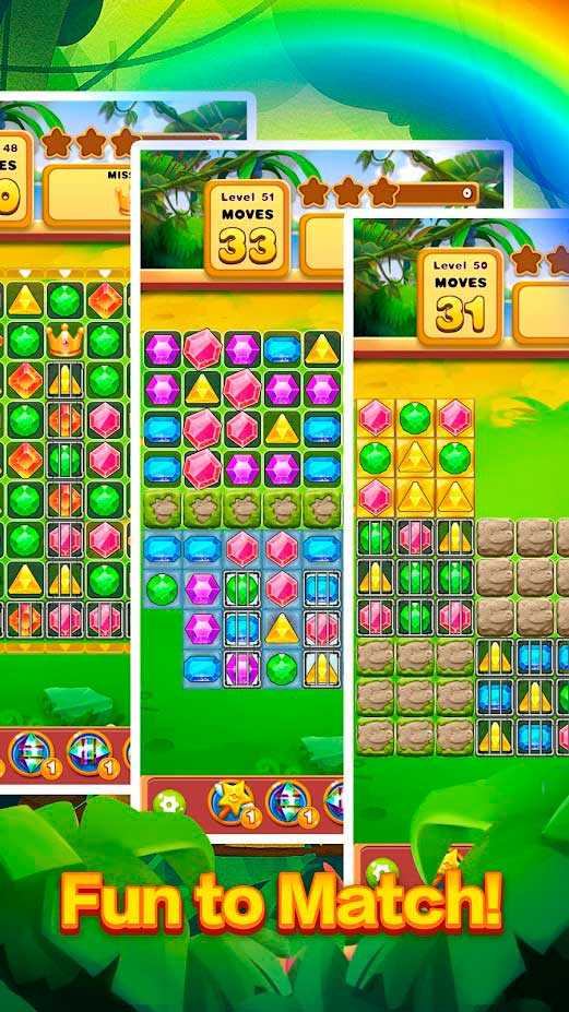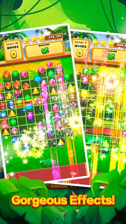 Sparkling Jewel Puzzle – это незатейливая мобильная игра с простой механикой и приятным оформлением. Собирайте комбинации из драгоценных камней, проходите многочисленные уровни и наслаждайтесь уютной атмосферой. Пользуйтесь специальными бонусами, чтобы ускорить игровой процесс и набирать больше очков. Отсутствие временных ограничений позволяет расслабиться и окунуться в красивое интерактивное приключение с яркими драгоценностями и классными спецэффектами.