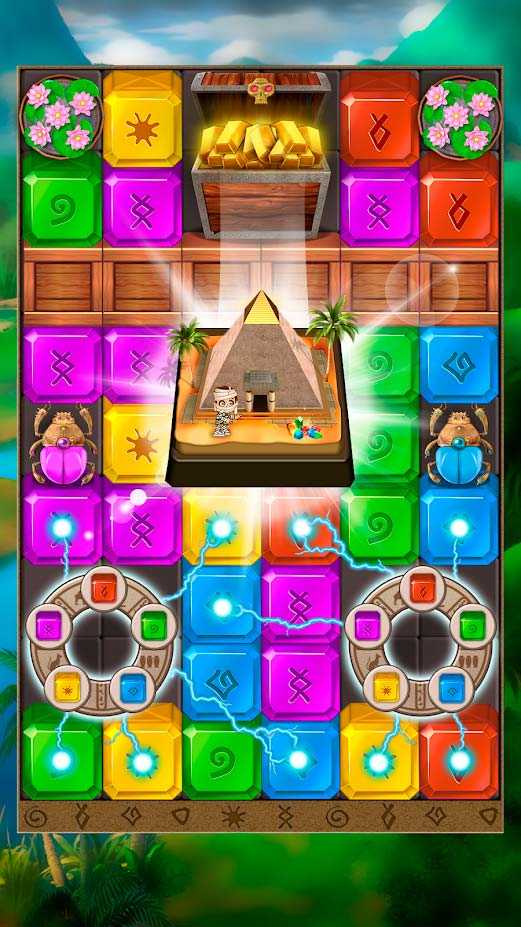 Храм блока сокровищ – это классическая головоломка с незатейливой механикой и кучей драгоценных камней. Отправляйтесь в путешествие по древнему Египту, сражайтесь с опасными монстрами, решайте загадки и наслаждайтесь удивительной атмосферой проекта. Соединяйте по несколько драгоценных кубов, пытаясь составить их максимальные комбинации. Тысячи уровней станут достойным испытанием вашего игрового мастерства.