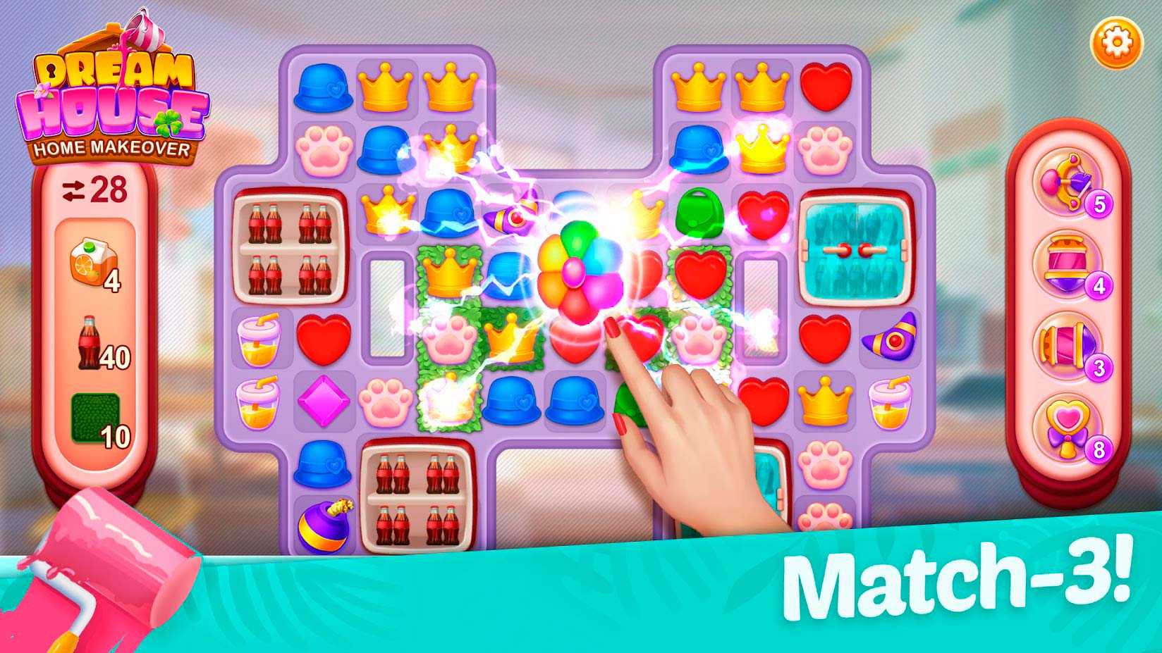 Dream House – это очаровательная казуальная игра, в которой вам предстоит воплощать свои дизайнерские мечты. Создавайте уют в большом доме, украшайте его как пожелаете. Каждый день тут вас ждут увлекательные задания и ценные награды. Классическая механика «три в ряд» давно знакома многим геймерам, а для новичков она не составит труда. Тысячи классных уровней, интересные головоломки, яркие герои и увлекательные истории подарят вам уйму положительных эмоций.