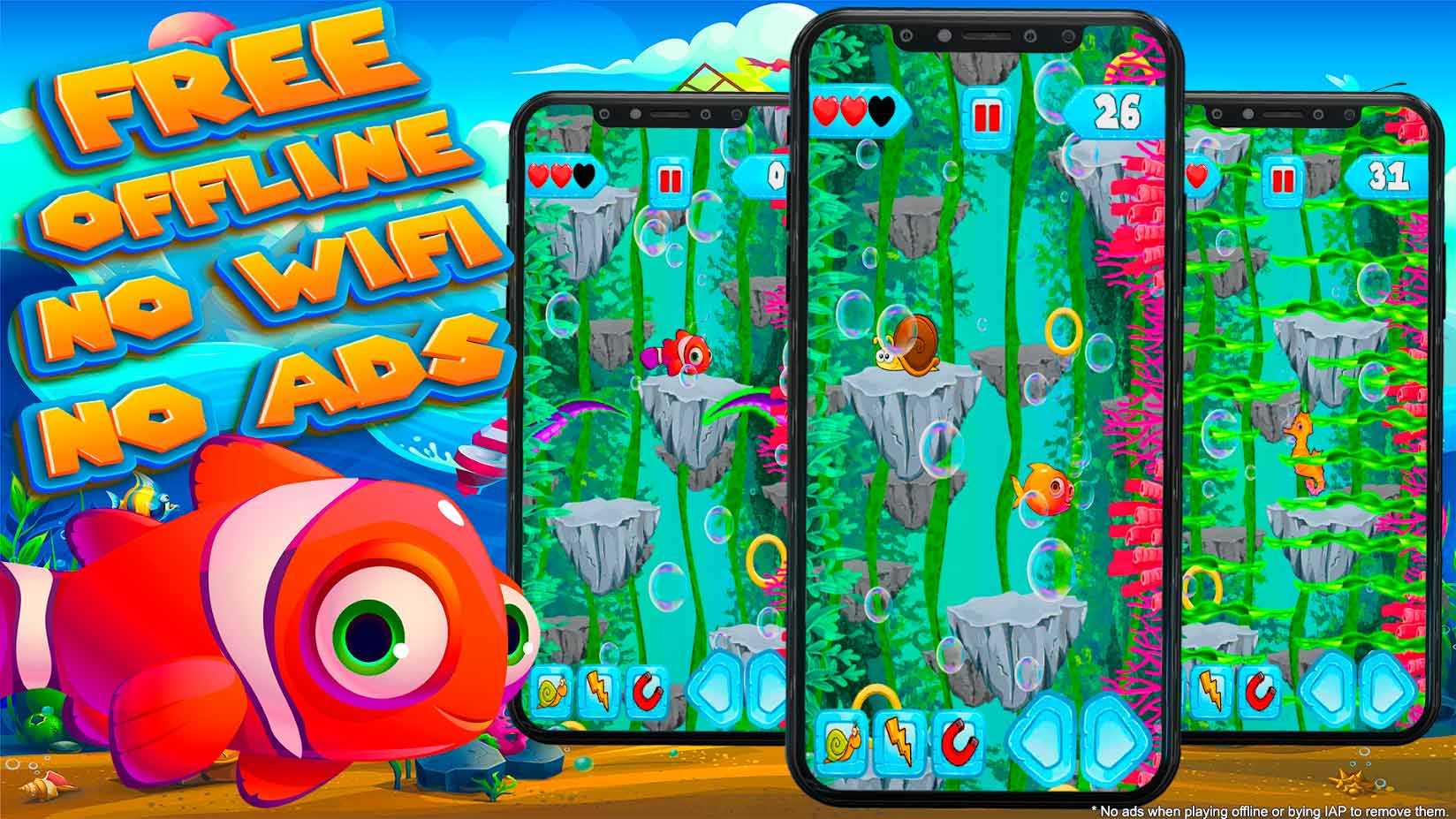 Рыба оффлайн игры – это забавная мобильная игра, в которой вы будете в роли рыбы-мутанта. Плывите через уровни, ищите звезды и старайтесь не попадаться на препятствия. Простой и незатейливый игровой процесс подарит вам массу положительных эмоций. Расслабляйтесь и отдыхайте за веселой игрой, доступной и без подключения к интернету. Управлять легко, графика красочная, геймплей динамичный – тут есть все, что нужно для отличного времяпрепровождения.