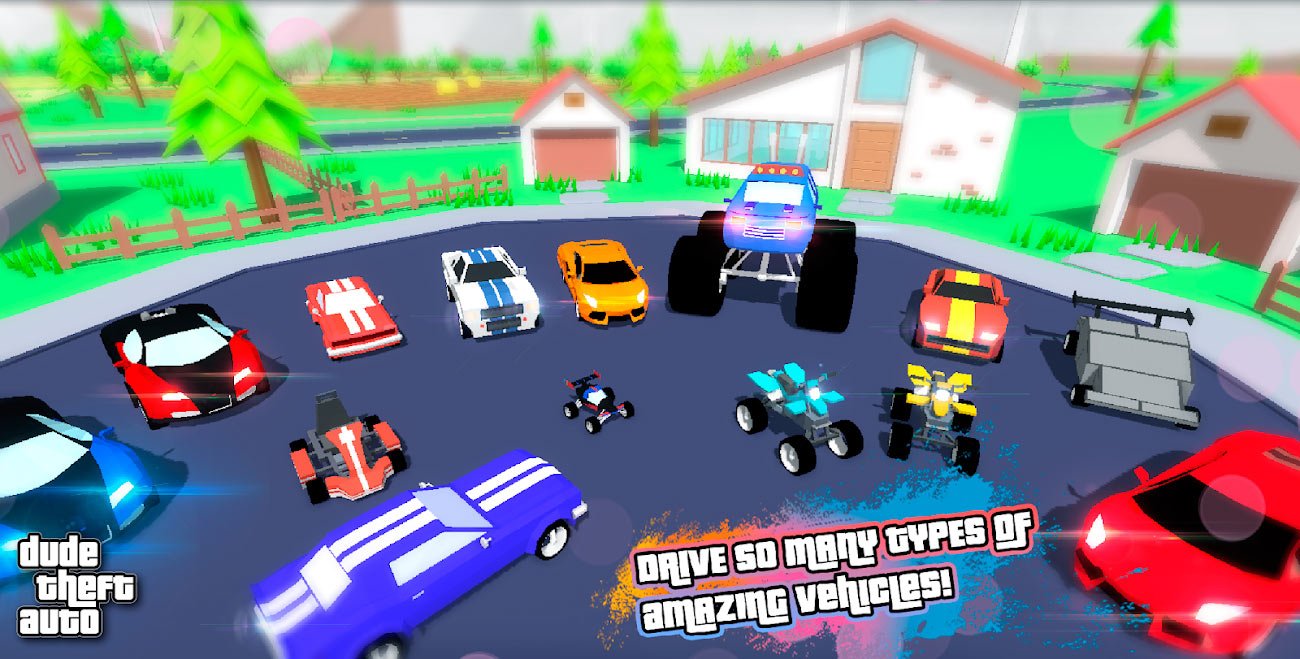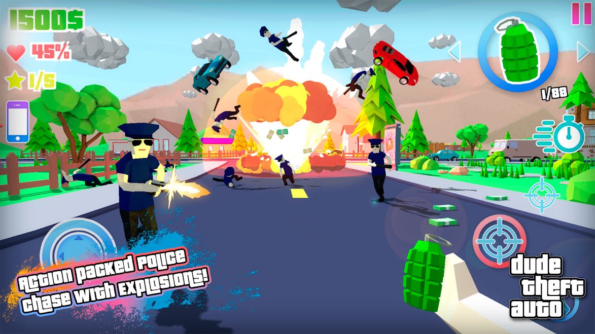 Dude Theft Auto – это уникальная современная игра для мобильных устройств, выполненная в стилистике легендарной GTA. Здесь вас также ждет огромный открытый город, наполненный многочисленными жителями, кучей крутых тачек, кровожадных банд, увлекательных заданий и еще массой уникальных элементов. Отправляйтесь в захватывающее приключение, в котором вы вольны заниматься всем, чем угодно. Сюжетная линия в игре присутствует, и она весьма интересна, но для получения наслаждения от игрового процесса выполнять все ее задания совсем не обязательно. Тут можно просто весело кататься на стильных автомобилях, участвовать в перестрелках или прогуливаться по городу в поисках проблем на свою голову или головы других его обитателей.