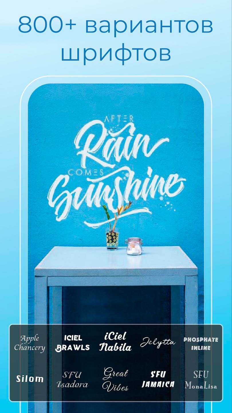 TextArt – это уникальный мобильный редактор текстов, с которым вы сможете сделать надпись на любом фото. Откройте для себя удобные инструменты для творчества и работы. Здесь вы найдете тысячи специально отобранных картинок, сотни фильтров, оригинальный дизайн, ассортимент шрифтов, яркие эффекты и многое-многое другое. Добавляйте надписи на фото всего за пару секунд, создавая отличные открытки и картинки. Приложение регулярно обновляется и дополняется, так что в скором времени ждите улучшение его работы и расширение функционала.