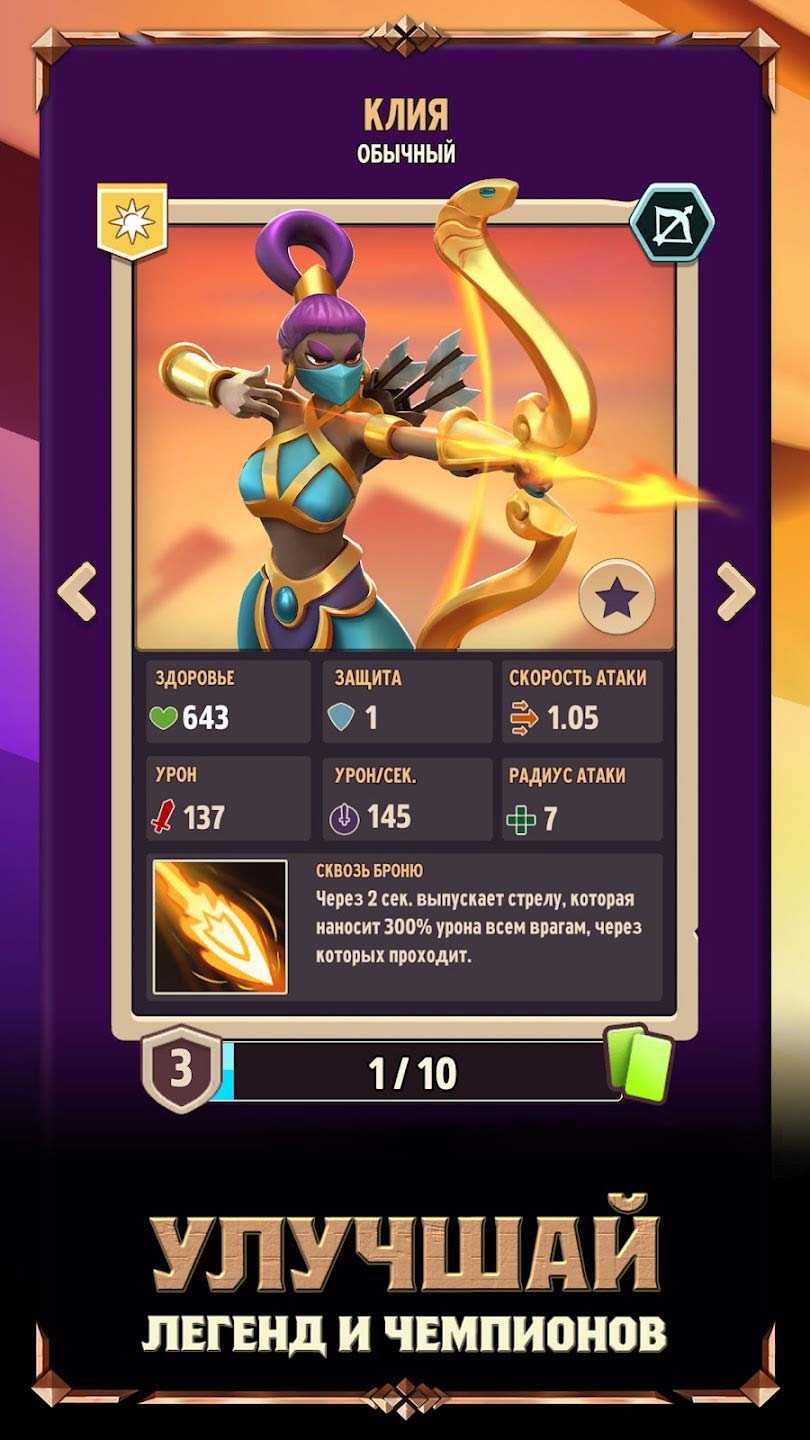 Mythic Legends – это легендарные карточные битвы с отменной графикой и динамичным геймплеем. Собирайте колоду, выбирайте турнир и планируйте тактический поход для каждого сражения. Легендарные чемпионы готовы к кровопролитным баталиям, осталось лишь отдать им приказ. Ежедневные события с отличными наградами станут достойным испытанием для любого искателя приключений. Используйте особые заклинания, учитывайте синергию и уничтожайте мощнейших противников.