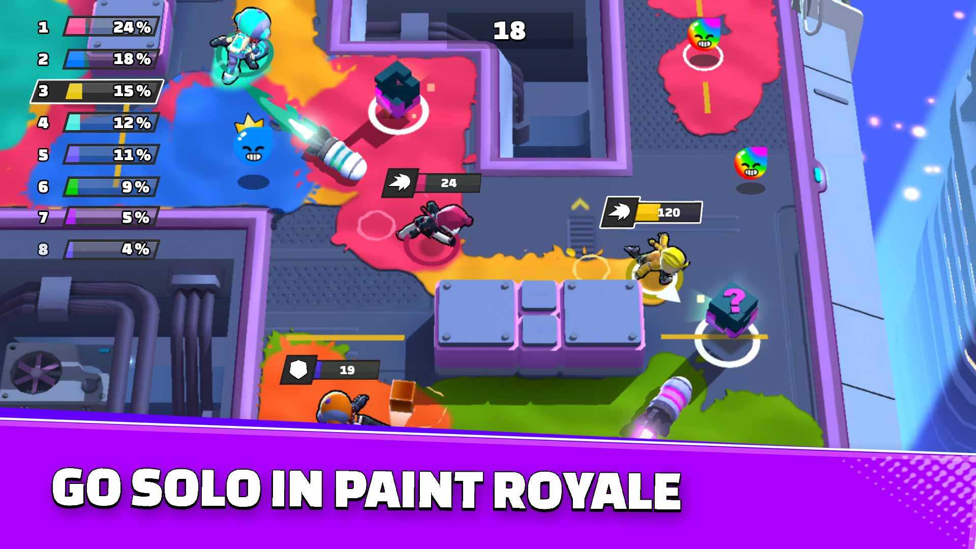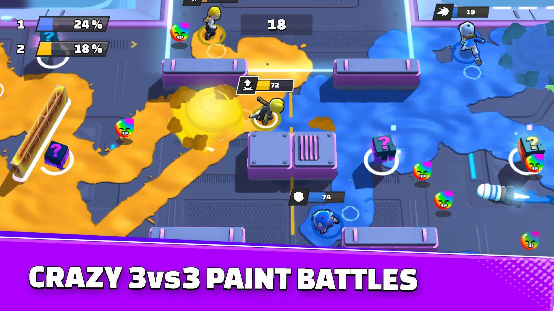 Team Conquest – это удивительные многопользовательские битвы с красками в режиме реального времени. Тут можно играть в одиночку или в команде. Разбрызгивайте краску во все стороны, чтобы победить своих противников и отлично повеселиться. Оцените разнообразные режимы игры: захват территории, королевская битва и защита башен. Создавайте своего героя и выходите на игровую арену для отличного развлечения. Краски много не бывает – настраивайте ее цвет, комбинируйте варианты и наслаждайтесь затягивающим игровым процессом.