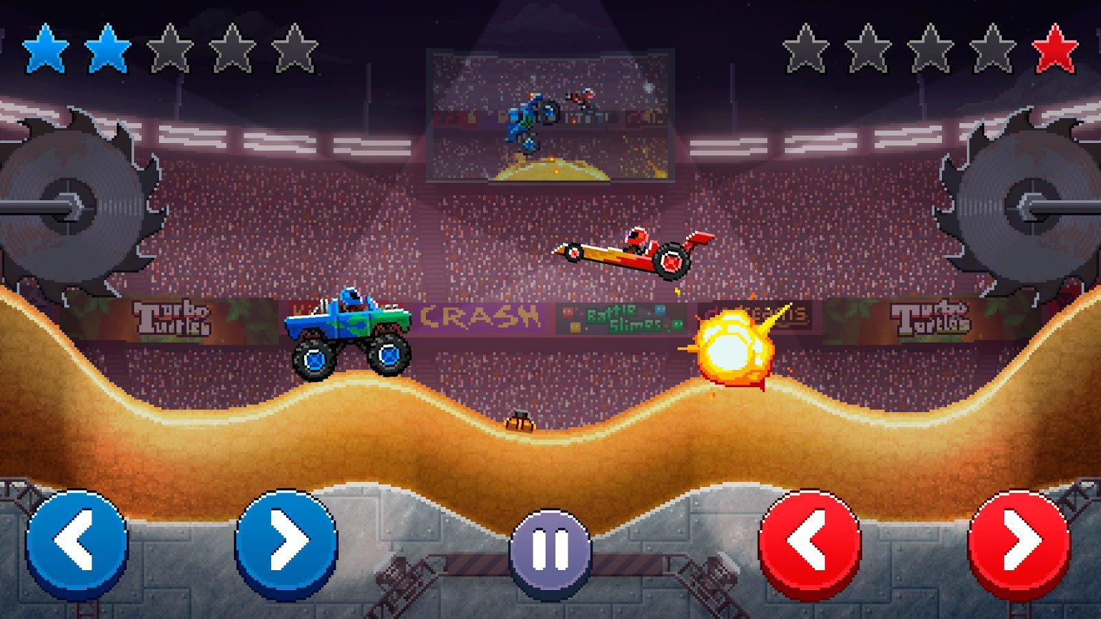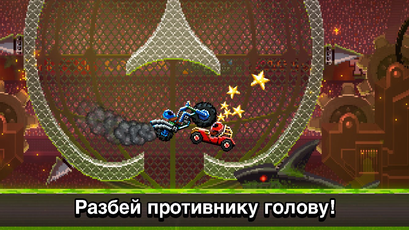 Drive Ahead! – это увлекательные гонки для мобильных устройств в приятной двухмерной графике. Здесь вы сможете не просто покататься на необычных машинках, но и ощутить неплохой прилив адреналина. Участвуйте на своем железном коне в настоящих гладиаторских поединках, побеждайте соперников в эпичных сражениях и завоевывайте ценные награды. Станьте величайшей легендой жестоких боев и докажите всем, что именно вы достойны звания чемпиона. На разнообразных трассах вы столкнетесь с машинами под управлением игроков со всего мира, и попадаться будут как неопытные бойцы, так и знаменитые мастера этой удивительной игры.