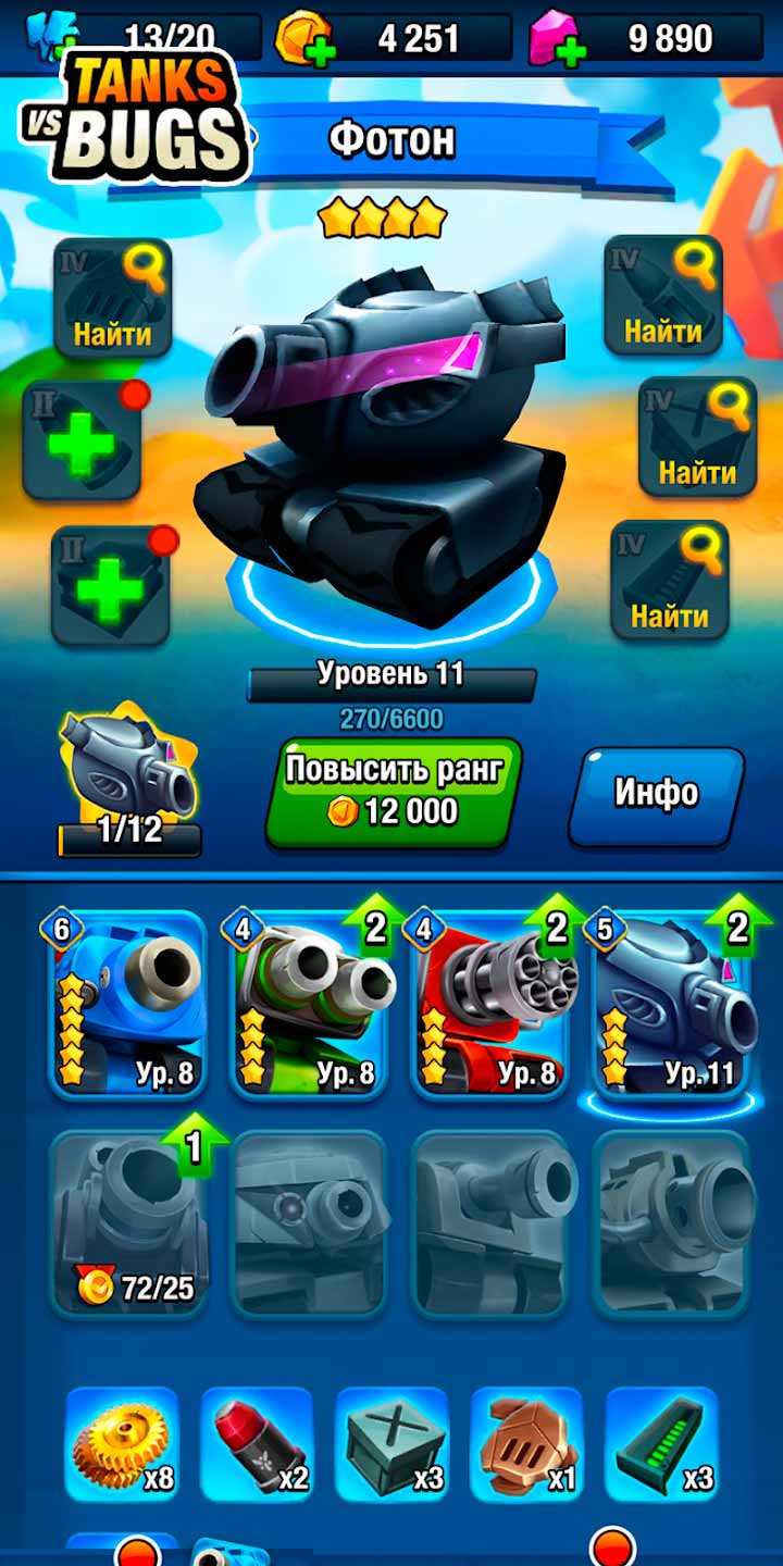 Tanks vs Bugs – это забавные мобильные баталии, где вас ждет эпичное противостояние танков и жуков. На удивительной планете фауна имеет нестандартные размеры, так что справиться с нашествием жуков сможет лишь танковая армада. Присоединяйтесь к этому веселью и воюйте как захотите, разнообразные противники и техника вам в помощь. Постарайтесь максимально эффективно комбинировать навыки, чтобы быстрее побеждать врагов и переходить к новым битвам.