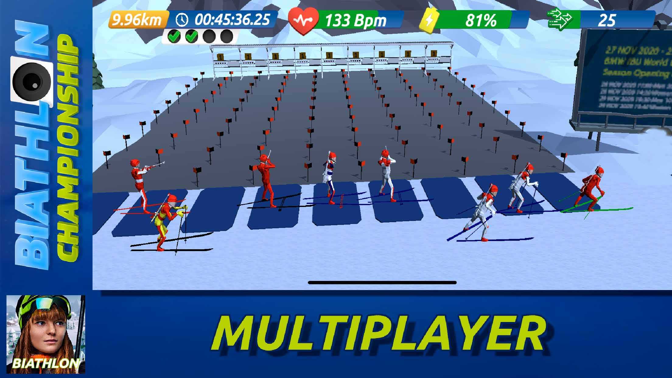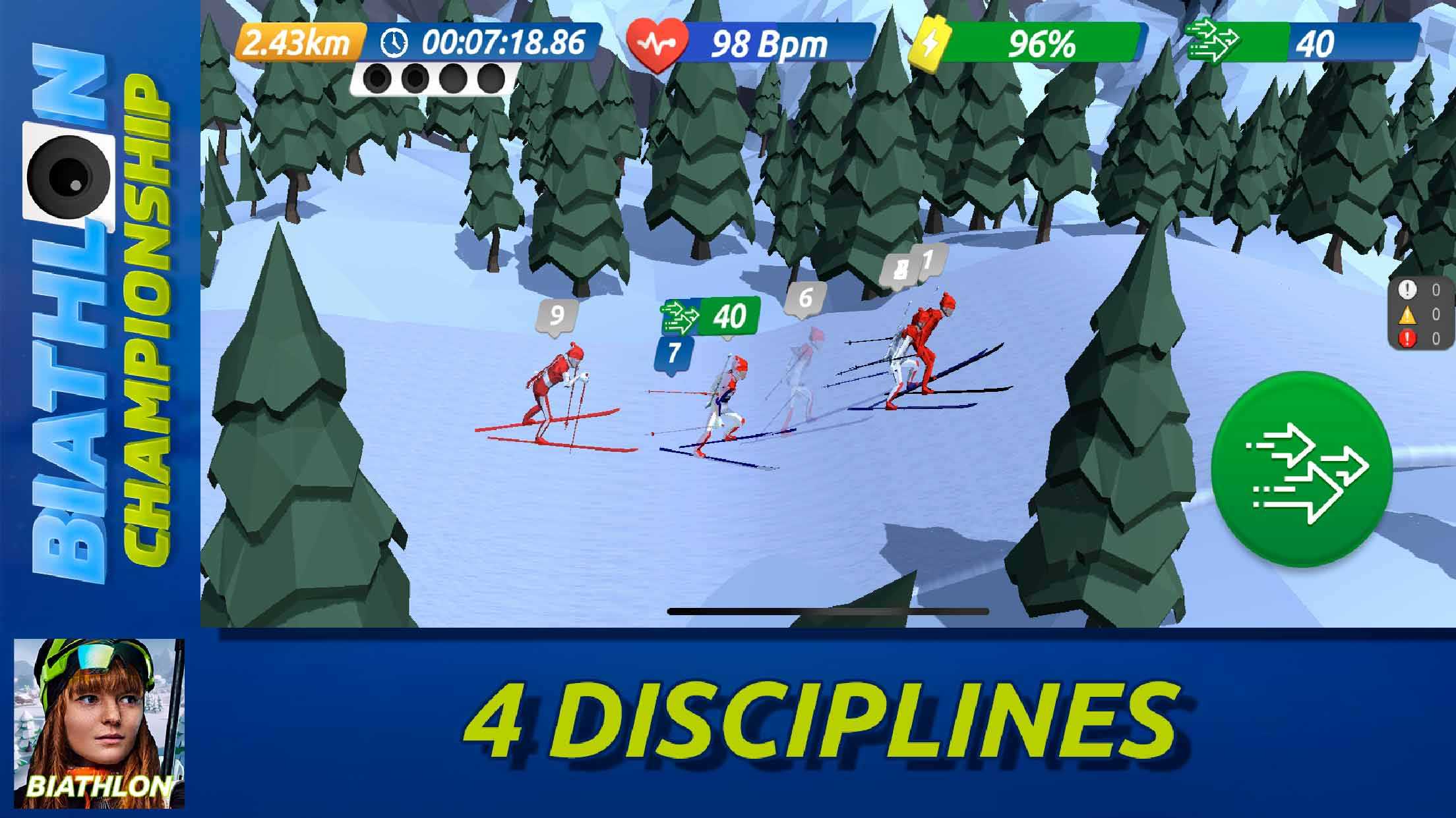 Biathlon Championship – это захватывающий интерактивный биатлон, который не оставит равнодушным ни одного любителя зимних видов спорта. Подбирайте лучшую экипировку и стратегию, чтобы вести свою команду к победе. Примите участие в соревнованиях по биатлону с другими игроками со всего мира. Не забывайте выполнять ежедневные задания и получать полезные награды. Рационально используйте энергию своих спортсменов, чтобы всегда иметь некоторый ее запас, достаточный для финального рывка в конце трассы.
