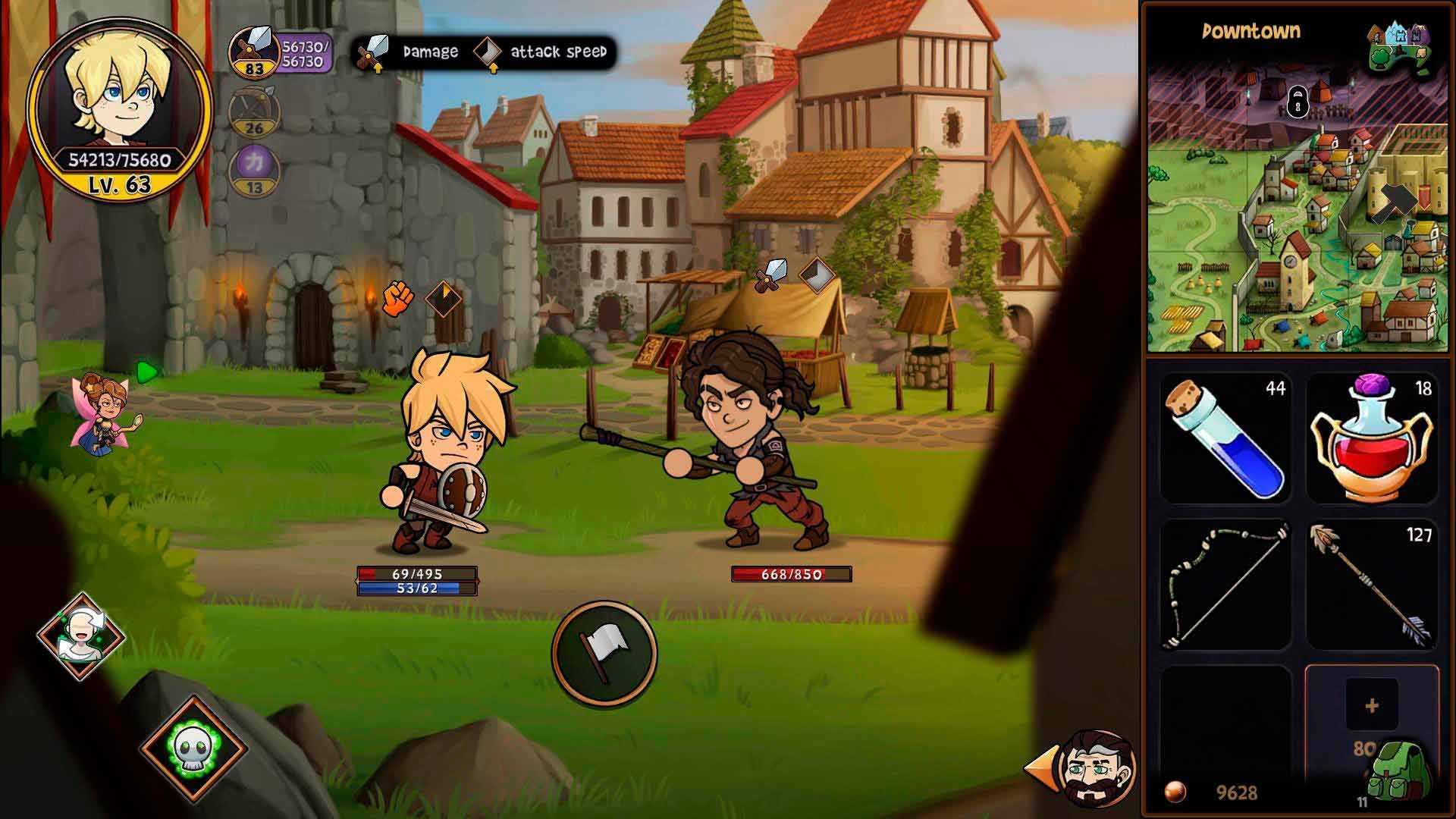 Hero Tale – это фэнтезийные средневековые приключения, где вас ждет куча всего интересного. Чтобы усилить своего героя, придется повоевать – хорошее снаряжение можно получить в качестве трофеев. Выбирайте стратегию и подстраивайте снаряжение под нее, чтобы создать оптимальный боевой стиль. В бою также прокачиваются навыки, так что больше сражайтесь, и ваш герой станет могучим воителем. Внимательно изучите дерево навыков и распределяйте их с умом, чтобы сделать персонажа еще сильнее.