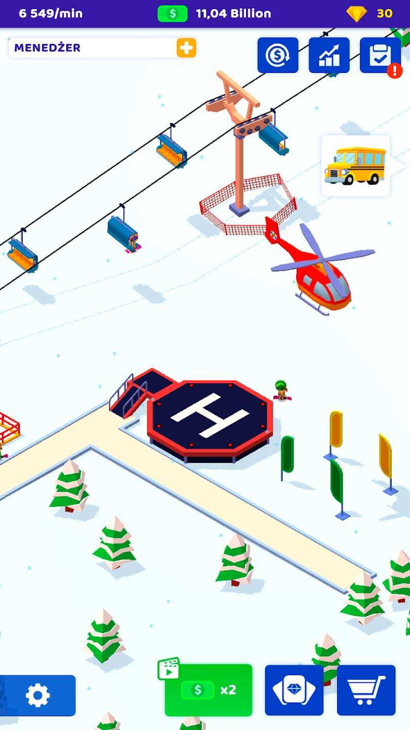 Ski Resort – это увлекательный менеджер горнолыжного курорта, в котором вас ждет массу интересных моментов. Займитесь бизнесом и развивайте его, стремитесь к получению большей прибыли, привлекайте новых клиентов и обустраивайте шикарный курорт. Здесь вы начнете с небольшого зимнего парка и сможете расширить его до действительно огромных размеров, возведя до курорта мирового уровня. Удобный кликер с массой возможностей понравится всем ценителям жанра.