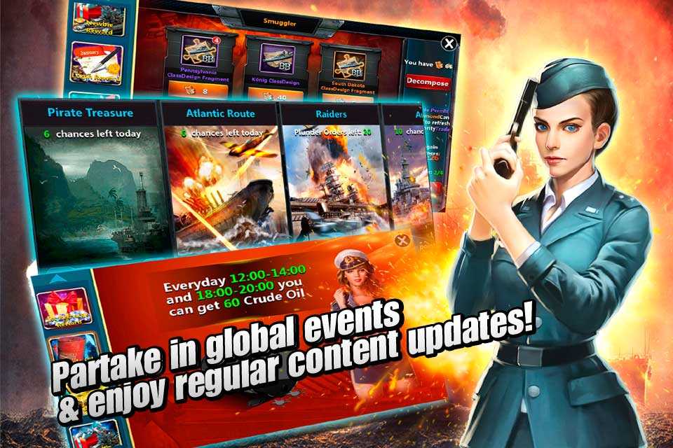 Age of Ships: battleships war – это захватывающая мобильная стратегия, в которой вы сможете построить свой личный флот и принять участие в масштабных морских баталиях. Воюйте с игроками по всему миру, улучшайте свои корабли, зарабатывайте награды и бесценный опыт, чтобы ваши военные силы стали еще мощнее и смертоноснее. Высококлассная графика, широкие возможности для развития стратегии, удобное управление и многие другие преимущества проекта делают его одним из лучших в своем жанре.