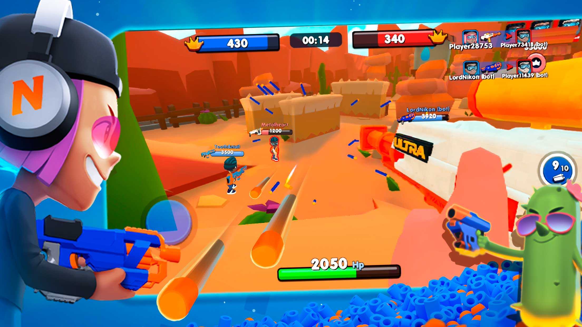 NERF: Superblast – это динамичные бои на бластерах с несколькими режимами игры и высококлассной графикой. Выбирайте свой боевой стиль, открывайте новые виды вооружения, одевайте лучшую экипировку, добавляйте карты силы и принимайте участие в быстрых сражениях. Различные красочные локации и большой выбор арсенала делают каждый бой ярким и незабываемым. Воюйте в компании с игроками со всего мира, веселитесь, развлекайтесь и просто хорошо проводите время в чудесной атмосфере проекта.