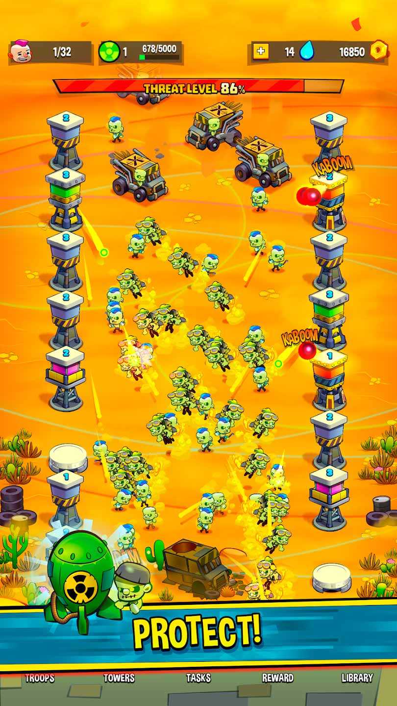 War Towers – это новая увлекательная защита базы в условиях постапокалипсиса. Обустраивайте достойную оборону, чтобы справиться с любыми вражескими неожиданностями. Играть можно и в автономном режиме, так что много времени приложение от вас не потребует. Возглавьте оборону единственного оставшегося цивилизованного города, чтобы коварные мусорщики не смогли его захватить. Враги наступают волнами, так что между атаками есть время передохнуть и перенаправить свои силы в зависимости от особенностей очередных захватчиков.