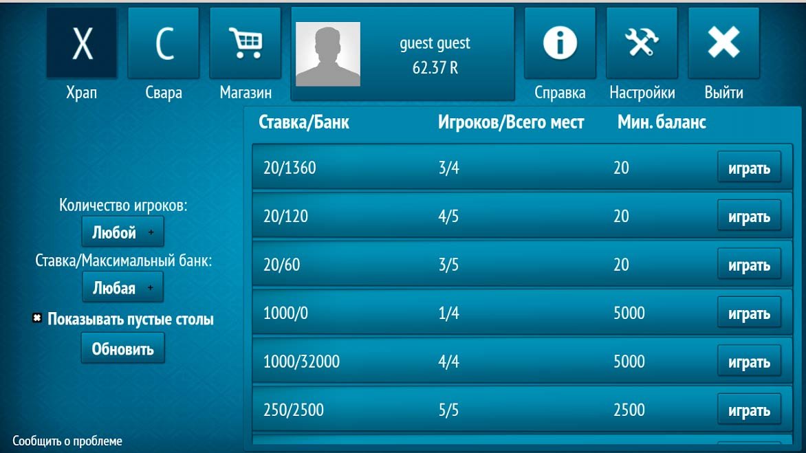 Теперь игра в Храп стала еще более интересной и увлекательной, что позволит вам ими наслаждаться еще дольше. Вы очень весело проведете время за такой игрой и сможете добиться успеха в соревнованиях между игроками со всего мира. Вы весело и интересно проведете время вместе со своими друзьями за такой карточной игрой. Играть онлайн в нее будет еще веселее и интересней. Вас ждет затягивающий игровой процесс, от которого вы будете получать удовольствие и наслаждение от такого уникального геймплея. Разбогатейте и станьте самым крутым в системе рейтинга. Эта игра была популярна еще во времена СССР и по-прежнему остается такой же.