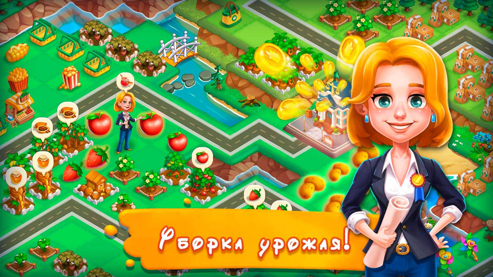 Merge Farmtown – это увлекательное городское планирование, где вы сможете примерить на себя функции мэра небольшого прибрежного городка. Здесь как раз собираются назначить новый управляющий аппарат, так что это отличные возможности для любого, кто хочет заняться городскими делами. Собирайте вместе местных жителей: шериф, портной, кондитер и многие другие персонажи готовы помочь вам достойно управлять обширной градостроительной системой. Объединяйте предметы в простой механике, решайте организационные вопросы, выполняйте разнообразные задания и наслаждайтесь отличным визуальным оформлением игры.