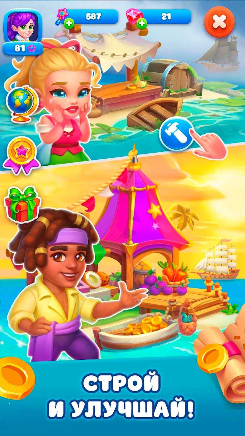 Елочка 2023: новая ферма – это очаровательная казуальная стратегия, в которой вас ждут яркие и увлекательные Карибские приключения. Попробуйте раскрыть все островные секреты и узнать тайны каждого персонажа, создавая свой уникальный город и развивая хозяйство. Затонувшие сокровища ждут своих искателей приключений, а неизведанные территории готовы принять смелых исследователей. Вместе с эльфами отправляйтесь за подарками и собирайте их в мешок. Разнообразные мини-игры делают каждый день в этом приложении еще ярче и веселее, так что забудьте о плохом настроении и просто наслаждайтесь отличной игрой, которая всегда под рукой на экране вашего телефона.