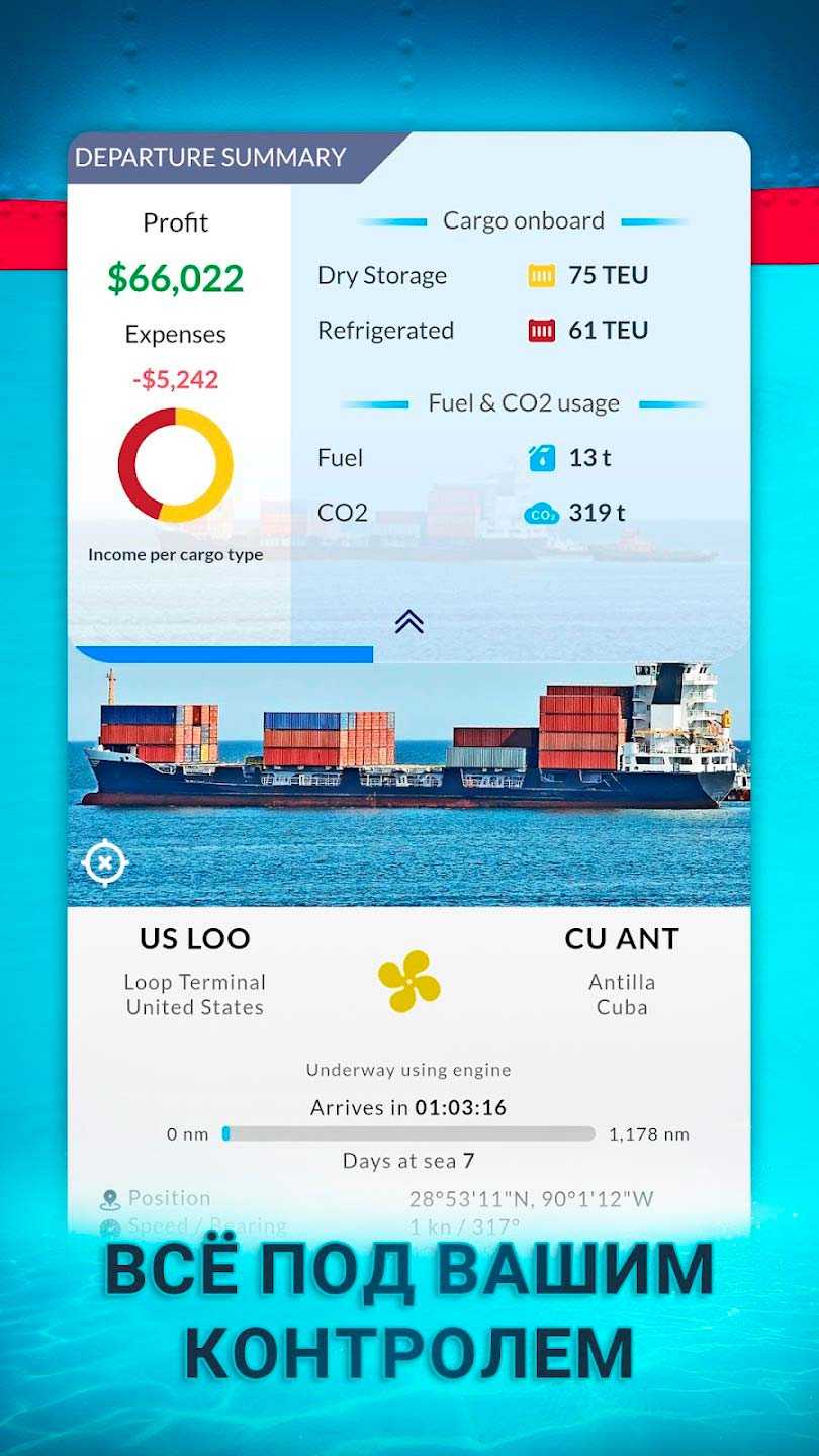Shipping Manager – 2024 – это увлекательный симулятор судоходства, в котором вам предстоит доставлять грузы по воде в различные места по всей планете. Займите контроль над морями, развивайте свою империю и становитесь лидером в сфере морских грузоперевозок. Разнообразные тактические возможности и наличие двух игровых режимов делают геймплей таким необычным и захватывающим. Выбрав простой режим, вы сможете забыть о многих мелочах деятельности и полностью сконцентрируетесь на получении максимальной прибыли, когда в режиме реализма проект заиграет совсем другими красками.