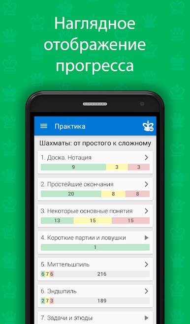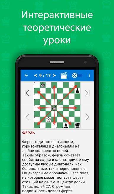 Чтобы познакомиться со всеми преимуществами шахмат вы должны скачать Обучение шахматам - от простого к сложному на андроид: