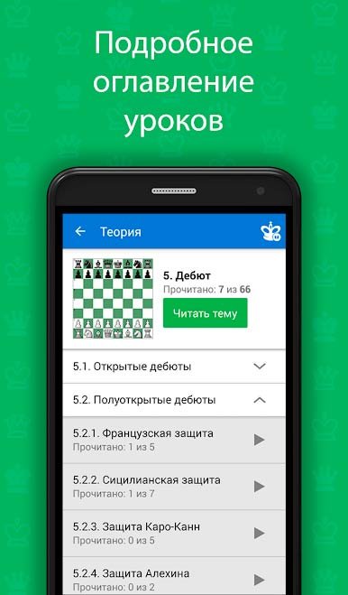 Это очень оригинальная игра, которая будет особенно полезной для тех, кто уже давно хотел обучиться играть в шахматы. Для этого теперь нужно просто скачать Обучение шахматам - от простого к сложному на андроид и пройти этот интересный путеводитель по спортивной игре в шахматы. Игроки смогут очень легко познакомиться со всеми основными правилами и законами в этой логической игре. Уже сейчас пользователи смогут просматривать больше сотни разнообразных тематик из шахмат. После того как сможете изучить большое количество правил и комбинаций в шахматах, получите возможности сыграть в своем первом дебюте.