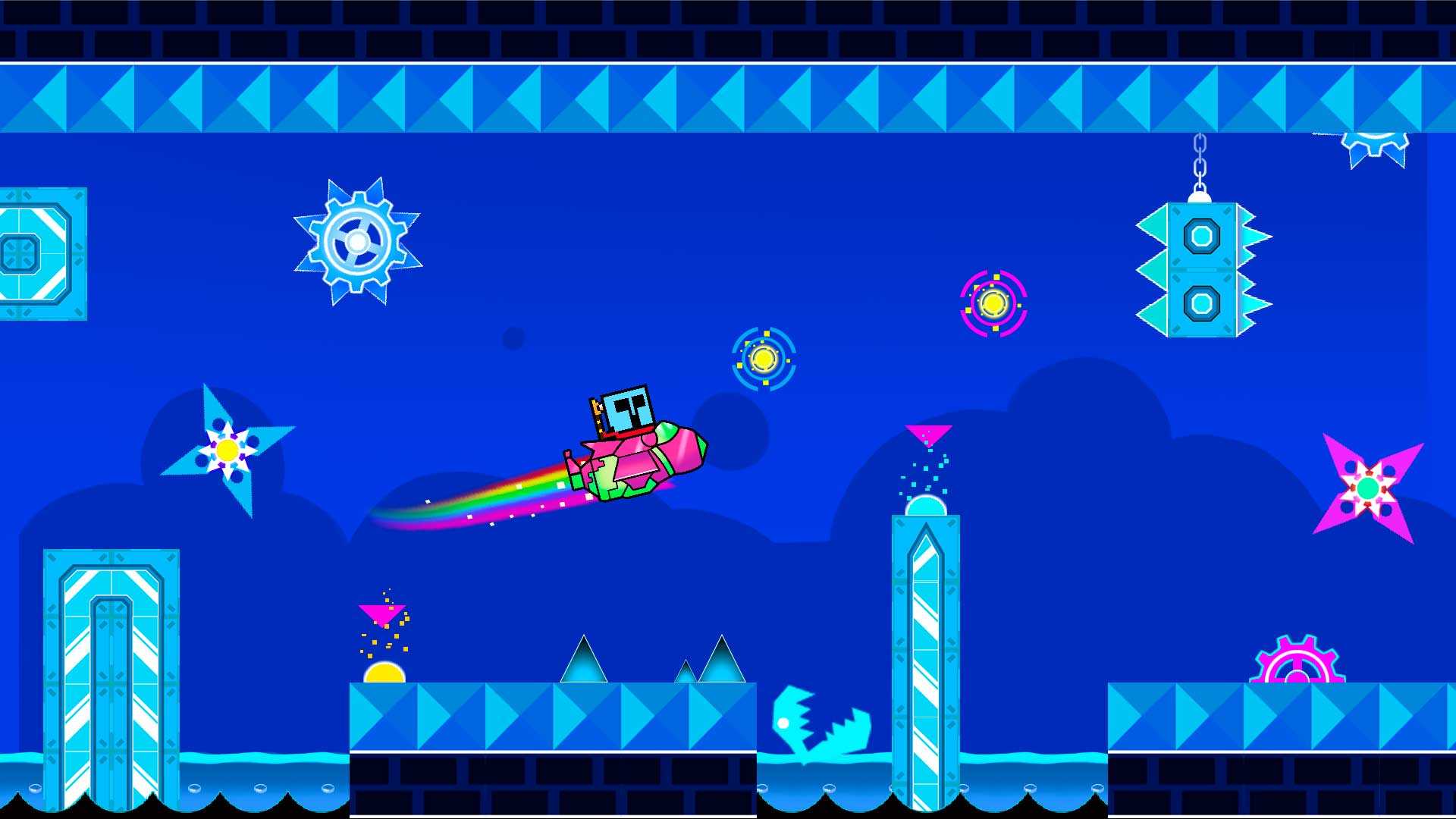 Block Dash: Jump Geometry Lite – это яркий пиксельный платформер, где все будет зависеть от ваших прыжков. Геометрическое приключение в новом исполнении порадует всех фанатов серии. Здесь законы физики легко меняются, все переворачивается с ног на голову, ритмичная музыка бодрит, а необычный стиль оформления сразу же бросается в глаза. Летайте и носитесь, продвигаясь вперед по карте, переходите от уровня к уровню, выполняйте испытания и открывайте новые возможности для своего персонажа. Чтобы отточить игровые навыки, заходите в режим практики и тренируйтесь.