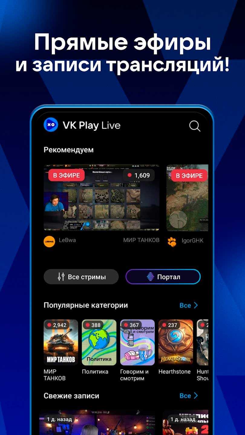 VK Play Live – это мобильная программа для вк, в которой удобно смотреть трансляции. Интуитивно понятный интерфейс и все необходимые функции делают приложение весьма востребованным среди современных пользователей. Управляйте всеми своими подписками, получайте уведомления, пользуйтесь доступными на платформе смайлами и другим контентом. Смотрите стримы игр любого жанра, выбирать лишь вам. Трансляции популярных блогеров, все самые горячие новинки и не только – здесь собрано множество интересных вещей.