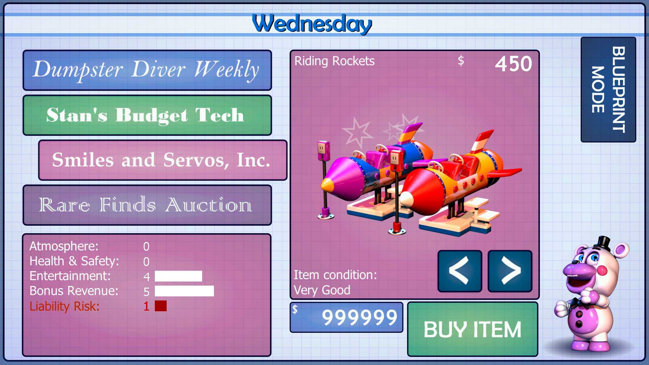 FNaF 6: Pizzeria Simulator – это очередная часть популярного ужастика, в которой вам предстоит развивать собственную пиццерию. Обустраивайте в ней аттракционы, лично выбирайте аниматронов и, когда все готово, закрывайтесь на ночь. А вот тут уже внимательно следите за всем происходящим, ведь поведение некоторых роботов будет весьма необычным. Как заметите движение, сразу светите туда фонариком, иначе ужасные механические монстры успеют добраться до вас и растерзать. Если как-то удастся пережить ночь, продолжайте обустраивать развлекательное заведение, чтобы в следующую ночь выжить в нем было проще.