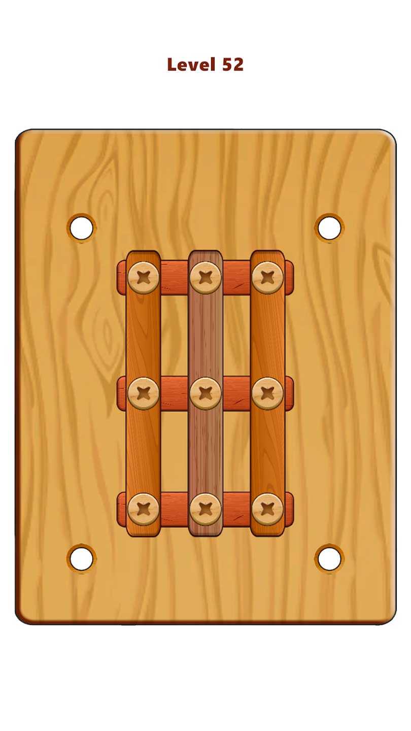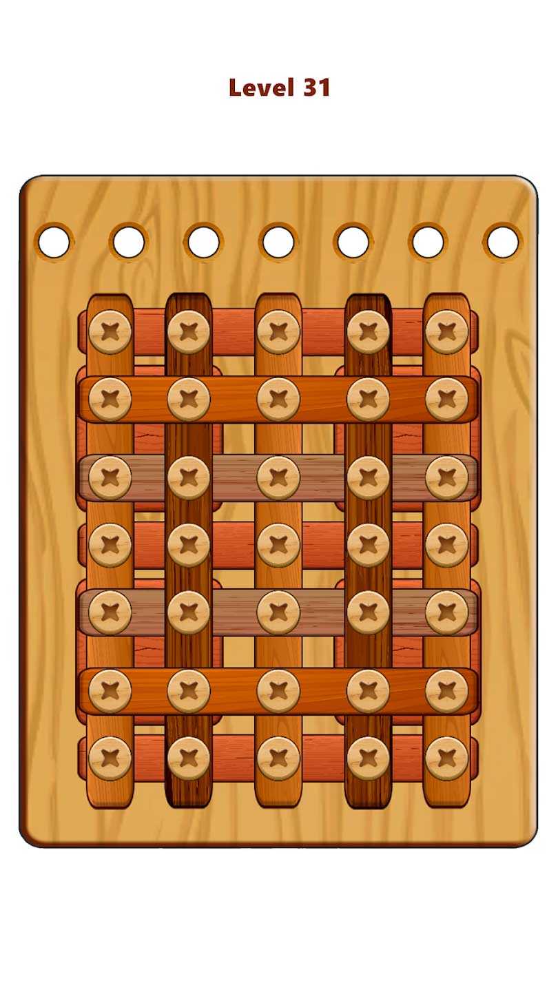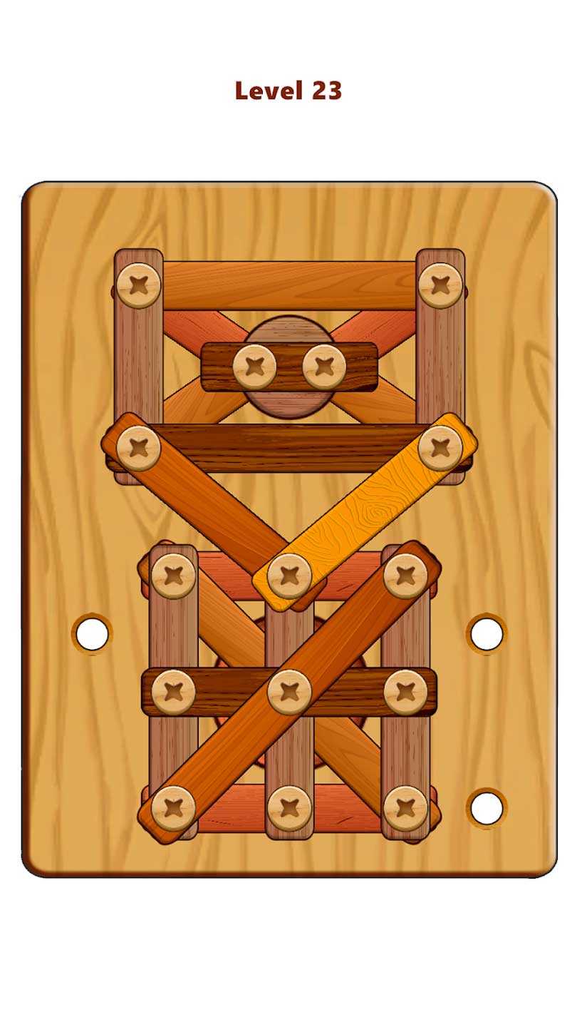Wood Nuts & Bolts Puzzle – это классные деревянные головоломки на экране вашего телефона, способные действительно развивать интеллектуально. Гайки и болты из дерева станут вам сниться, если какой-то из уровней не будет пройден, так что нужно включить мозги и решить каждую задачку. Несколько уровней сложности не дадут сойти с ума, когда простые задания вы начнете проходить с закрытыми глазами. Сотни занимательных головоломок станут настоящим испытанием для вашей смекалки и эрудиции. А самые лучшие игроки будут записаны в верхних строках лидерской таблицы.